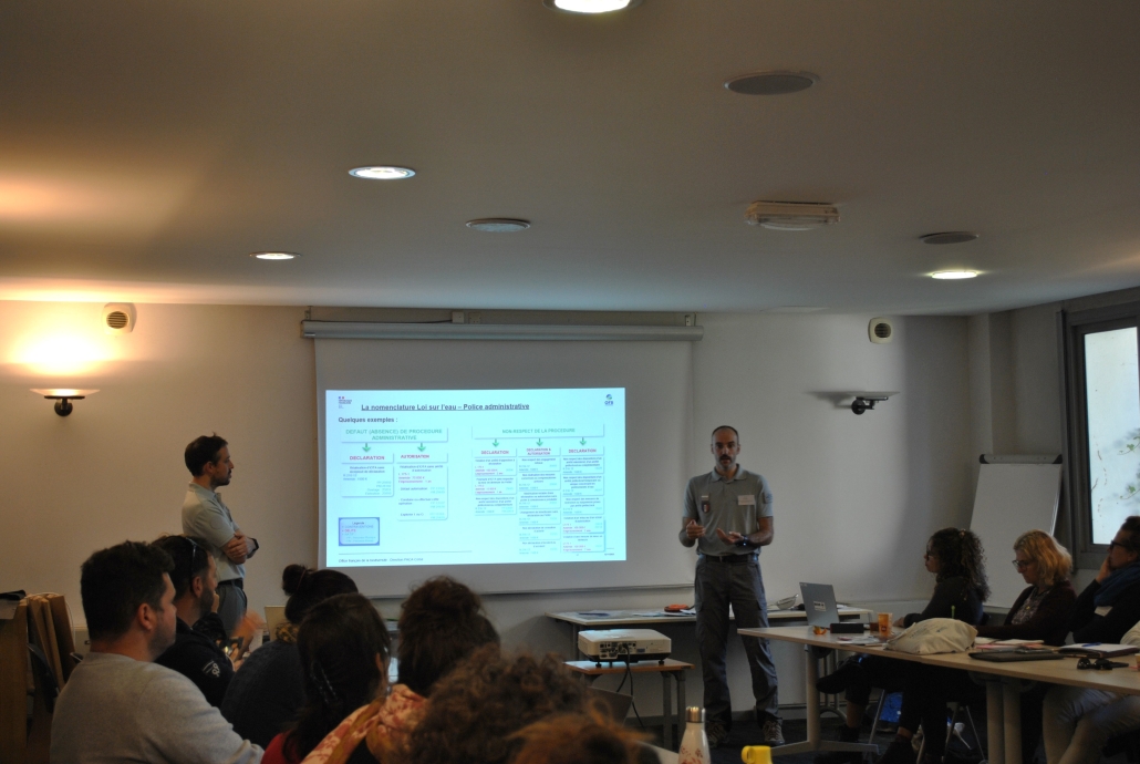 La demi-journée a débuté par une contextualisation de la thématique, avec un éclairage sur la Directive Cadre sur l’Eau (DCE) et la loi sur l’eau et les milieux aquatiques, présenté par l’Office français de la biodiversité (OFB) Provence-Alpes-Côte d’Azur Corse. Les critères d’évaluation de l’état d’un cours d’eau, ainsi que les missions de suivi de l’état écologique des masses d’eau, ont été détaillés. Cette introduction a permis de rappeler les enjeux réglementaires et le dispositif de surveillance en vigueur sur le bassin Rhône-Méditerranée.