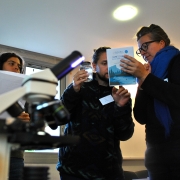 L’impact anthropique vu par l’œil du bioindicateur : créé pour l’occasion par l’association Chercheurs en herbe, adhérente du GRAINE, cet atelier a permis aux participants d’apprendre à lire écologiquement un cours d’eau à travers ses habitats et ses faciès biogènes. Une méthode simplifiée d’évaluation biologique de la qualité de l’eau, basée sur le protocole invertébrés I2M2, à destination des lycéens et adultes, a été présentée. L’atelier est complété par l’observation à la loupe binoculaire et au microscope d’échantillons de faune benthique prélevés dans un cours d’eau afin de comprendre comment les insectes aquatiques servent de bioindicateurs de la qualité de l’eau en fonction de leur sensibilité à a pollution.