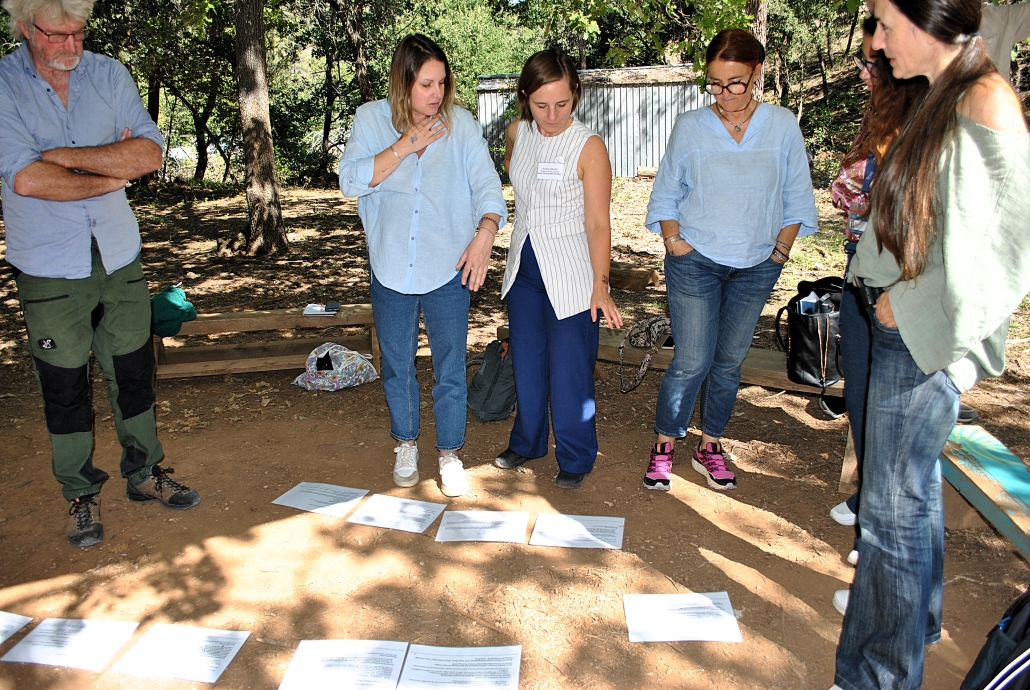 Le matin, quatorze participants de profils variés (éducateurs environnement, enseignants, responsables associatifs), se sont prêtés au jeu du photolangage. Chaque carte associe une image à un bénéfice concret de l’éducation en extérieur, chacun étayé par des études scientifiques. Les volontaires avaient pour mission d’agencer les cartes selon un argumentaire logique. Résultat : Une méthode ludique et efficace pour s’approprier des données scientifiques et les mobiliser dans des discussions réelles.